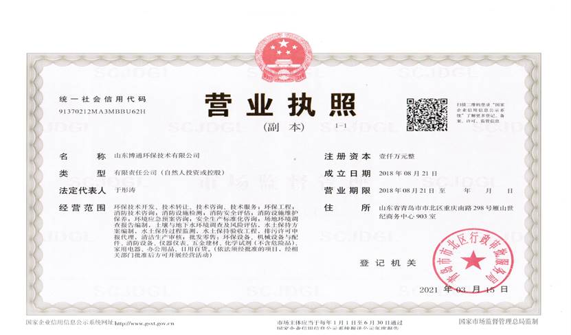 山東博通環(huán)保技術(shù)有限公司是一家專業(yè)從事環(huán)保、安全、消防的多元化技術(shù)服務(wù)公司,公司致力于打造專業(yè)的技術(shù)服務(wù)團隊,立足青島,輻射山東,服務(wù)范圍涵蓋:環(huán)保技術(shù)開發(fā)、技術(shù)轉(zhuǎn)讓、技術(shù)咨詢、技術(shù)服務(wù);環(huán)保工程;消防技術(shù)咨詢;消防設(shè)施檢測;消防安全評估;消防設(shè)施維護保養(yǎng);環(huán)境應(yīng)急預(yù)案咨詢;安全生產(chǎn)標準化咨詢;場地環(huán)境調(diào)查報告編制,土壤與地下水環(huán)境調(diào)查及風險評估,水土保持方案編制,水土保持過程監(jiān)測,水土保持驗收工程,排污許可申報代理,清潔生產(chǎn)審核;批發(fā)零售:環(huán)保設(shè)備、機械設(shè)備與配件、消防設(shè)備、儀器儀表、五金建材、化學(xué)試劑(不含危險品)。公司具有“建設(shè)手續(xù)一站式辦理,安環(huán)問題一條龍解決”的獨特優(yōu)勢,可為客戶提供高效、優(yōu)質(zhì)的安全、環(huán)保、消防管家技術(shù)服務(wù)。